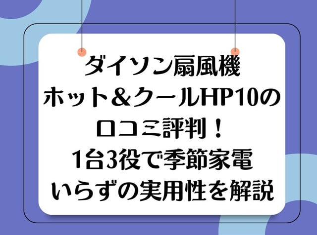 この記事では、ダイソンの羽根のない扇風機で売上No.1モデル「扇風機ホット&クール HP10」の口コミや評判について、わかりやすくご紹介します。