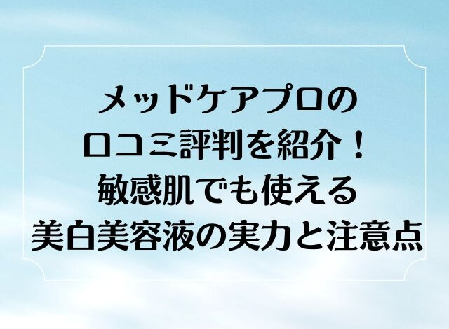 この記事では、敏感肌の方でも安心して使えると話題の美白美容液「メッドケアプロ」について、実際に使った方々の正直な口コミをご紹介します。
