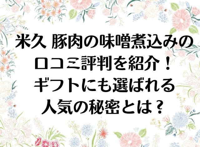 この記事では「米久 豚肉の味噌煮込み」の口コミや評判について、わかりやすくご紹介しています。